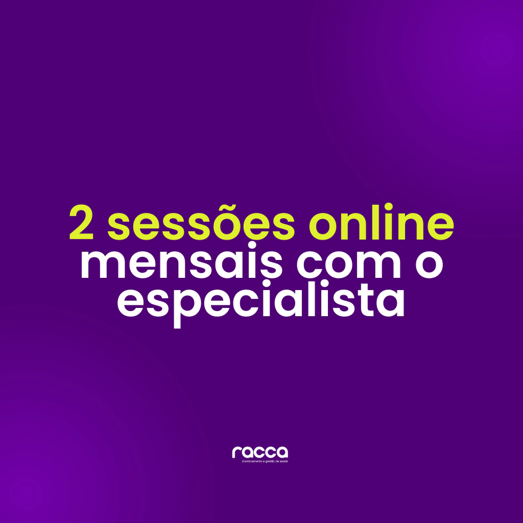 2 sessões online mensais com o especialista com CRP Ativo. Apoio emocional contínuo com orientação profissional. Pode escolher o profissional, sexo, abordagem. Caso não identifique com o profissional, pode escolher outro.